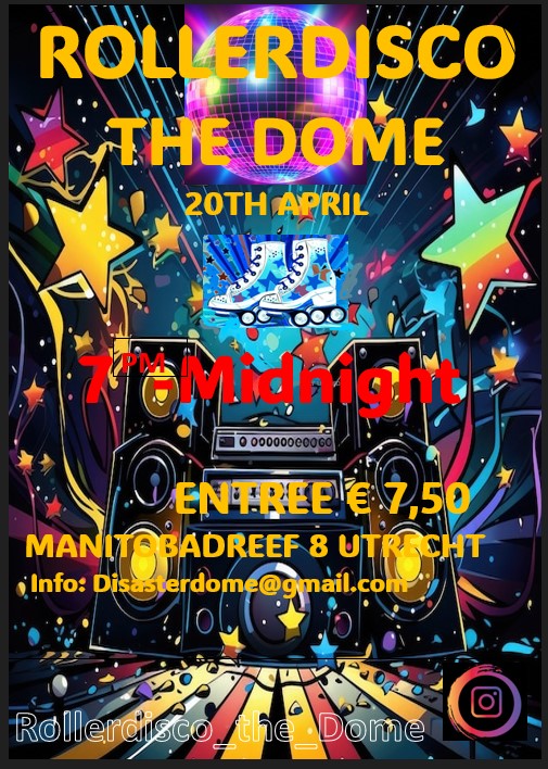 Zaterdag 20 april 2024 gaat het Great Rollerdisco-event in #The Dome weer van start. Vanaf 19:00 gaan de deuren open en kun je tijdens het skaten genieten van geweldige muziek.